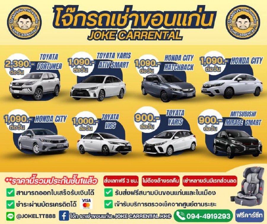 โจ๊กเลิศทับทิมรถเช่าขอนแก่น บริการให้เช่ารถ 4 เเละ 7 ที่นั่ง